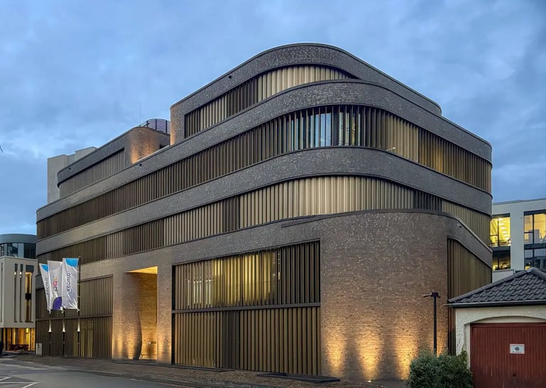 Konzept: Repräsentativer Neubau als Unternehmenszentrale, der moderne Arbeitswelten mit dem traditionellen Baustoff Klinker verbindet.